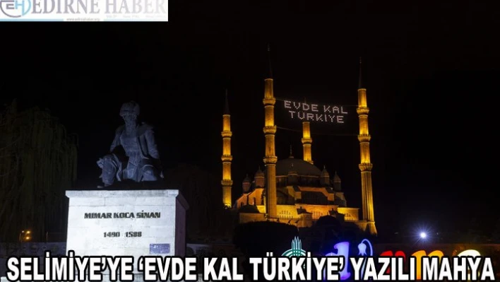 Türk-İslam eserlerinin zirve eserlerinden Edirne'deki Selimiye Camisi'nin minareleri arasına "Evde Kal Türkiye" yazılı mahya asıldı.