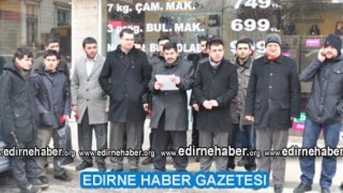 Milli Türk Talebe Birliği üyeleri ile bazı sivil toplum örgütlerinin temsilcileri, 1915 olaylarıyla ilgili olarak Ermeni iddialarının inkarını suç sayan düzenlemenin dün Fransa Parlamentosunda kabul edilmesi nedeniyle Edirne'de Balık Pazarı Caddesi'nde bulunan Fransız Fahri Başkonsolosluğu önünde toplandı.