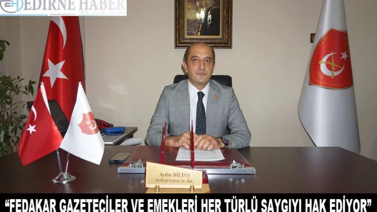 Türkiye Emekli Astsubaylar Derneği (TEMAD) Edirne Şube Başkanı Aydın Bildiş, 10 Ocak Çalışan Gazeteciler Günü dolayısıyla kutlama mesajı yayımladı. Bildiş mesajında, gazetecilerin görev yaparken karşılaştıkları şiddet görüntülerinin son bulduğu ve mesleki beklentilerin karşılandığı günlerin başlamasını diledi.