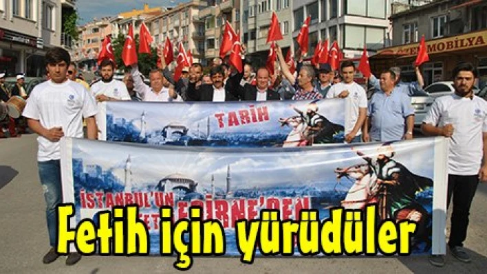 İstanbul’un Fethinin Edirne’den başladığı belirten Anadolu Gençlik Derneği üyeleri temsili Fetih yürüyüşü düzenledi. Tophane Bayırından başlayan yürüyüşte Fatih Sultan At üzerinde canlandırıldı ve yürüyüşe mehteran takımı eşlik etti.
