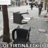 Aynı apartmanın çatısından kopan çanak anten yola savrulurken, iş yerlerinin önünde bulunan plastik sandalye ve masalar da rüzgarın etkisiyle sürüklendi.