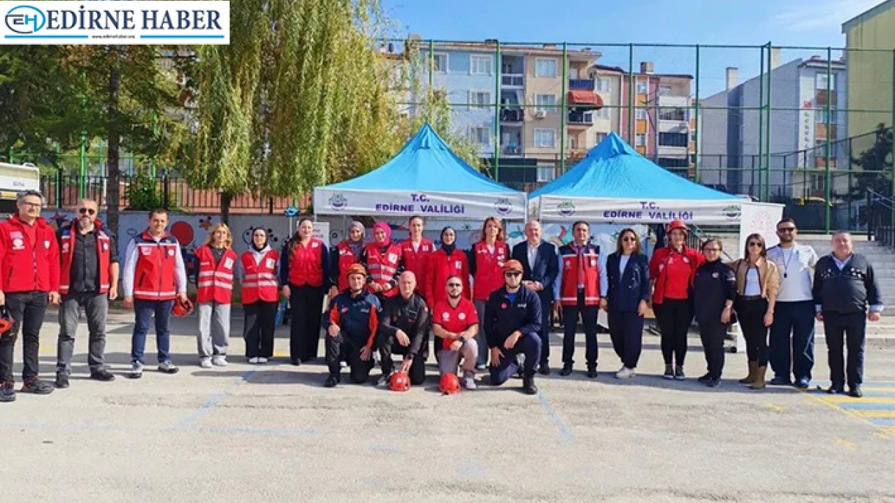 Edirne'de Genç Kızılay gönüllüleri, İsmail Güner Ortaokulu'nda gerçekleştirilen Acil Durum Tahliye Tatbikatı'na katılarak afet bilincine dikkat çekti.