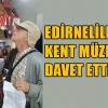 Elinde konuşma metnini yazdığı davetiyesiyle dükkanları gezen Gegeli Hasan Yörükbayır, Edirnelileri Kent Müzesini ziyarete davet etti.