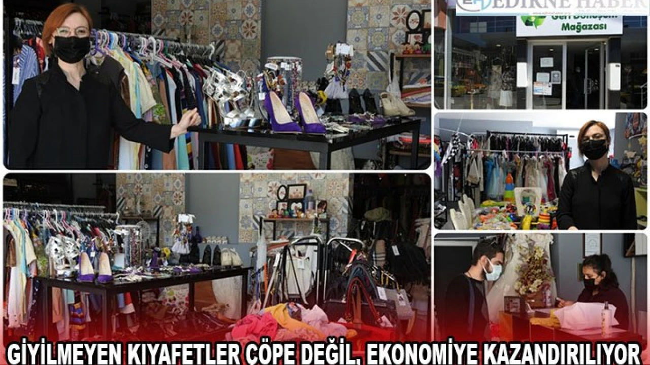 Geri dönüşüm mağazasında ayakkabıdan çantaya, takıdan zücaciyeye, giyimden, abiyeye, oyuncaktan bebek eşyalarına kadar birçok ürün bulunuyor. Tüketim çılgınlığına karşı geri dönüşümü yaygınlaştırılmasını sağlamak ve toplumda israfı önlemek amacıyla yola çıkan 41 yaşındaki Edirneli Serap Sevinç, yurt dışında yaygın olarak görülen ikinci el dolaşımı ve geri dönüşümle ekonomiye katkıda bulunmayı hedefliyor.