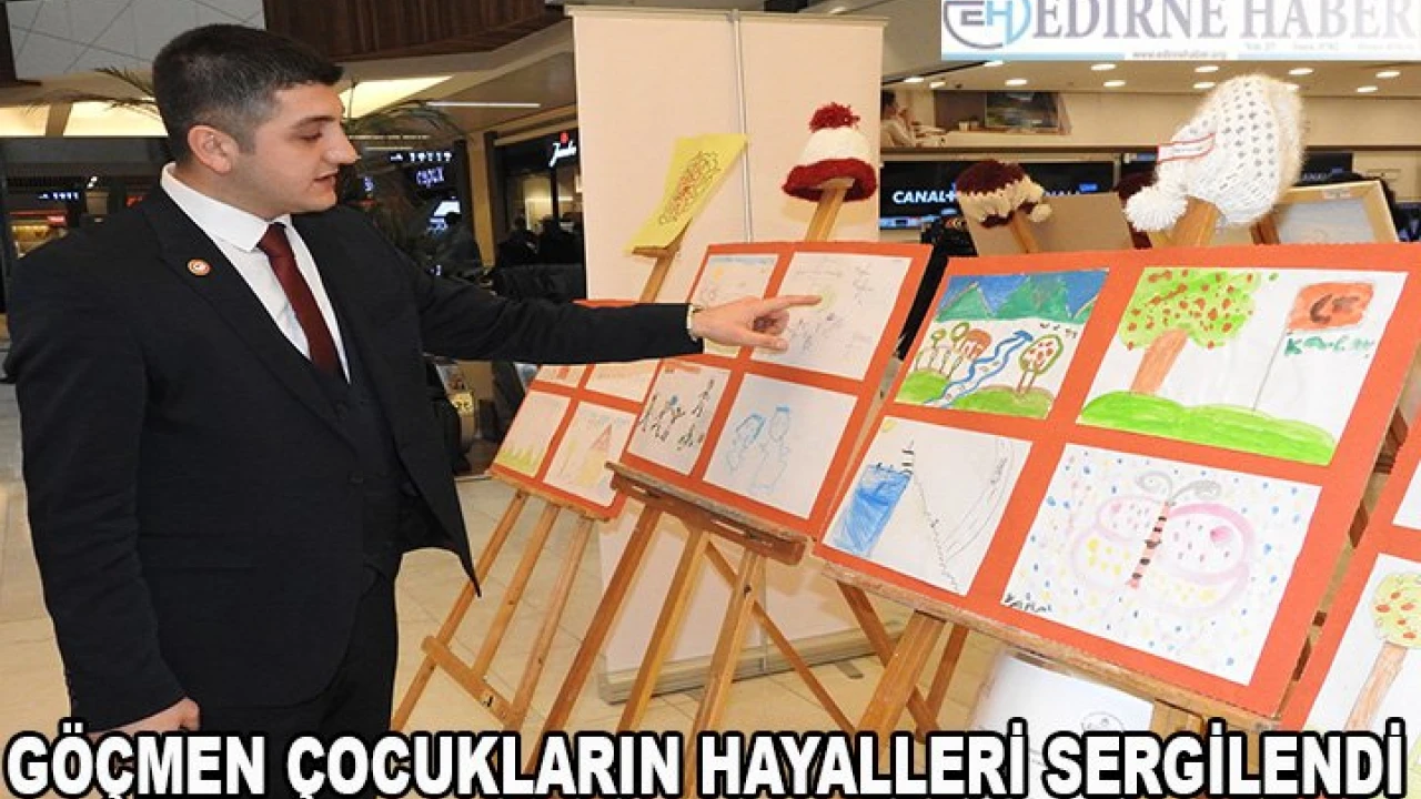 Edirne'de ‘Uluslararası Göçmenler Günü' dolayısıyla bir alışveriş merkezinde göçmen çocukların hayallerinin anlatıldığı resimler ve el emeği örgülerden oluşan eserler sergilendi.