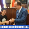 Kırcaali’den gelen grubun hediyelerini kabul eden Edirne Belediye Başkanı Recep Gürkan, tek tek öğrencilerle tokalaşarak kendilerine hediye takdim etti.