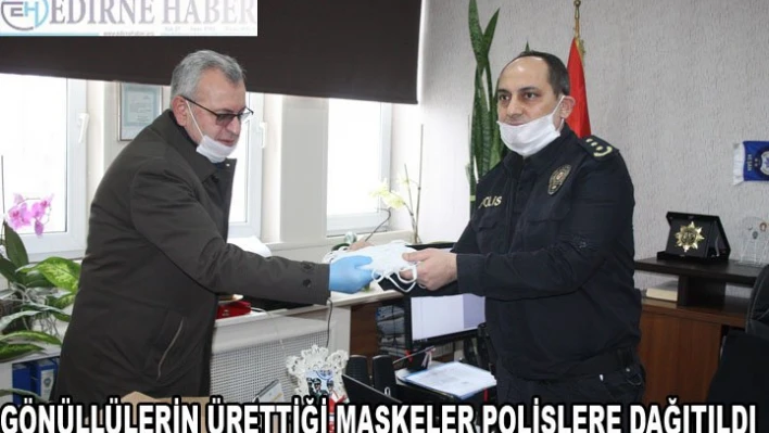 Edirne'nin Keşan ilçesinde gönüllülerin ürettiği maskeler polislere dağıtıldı.