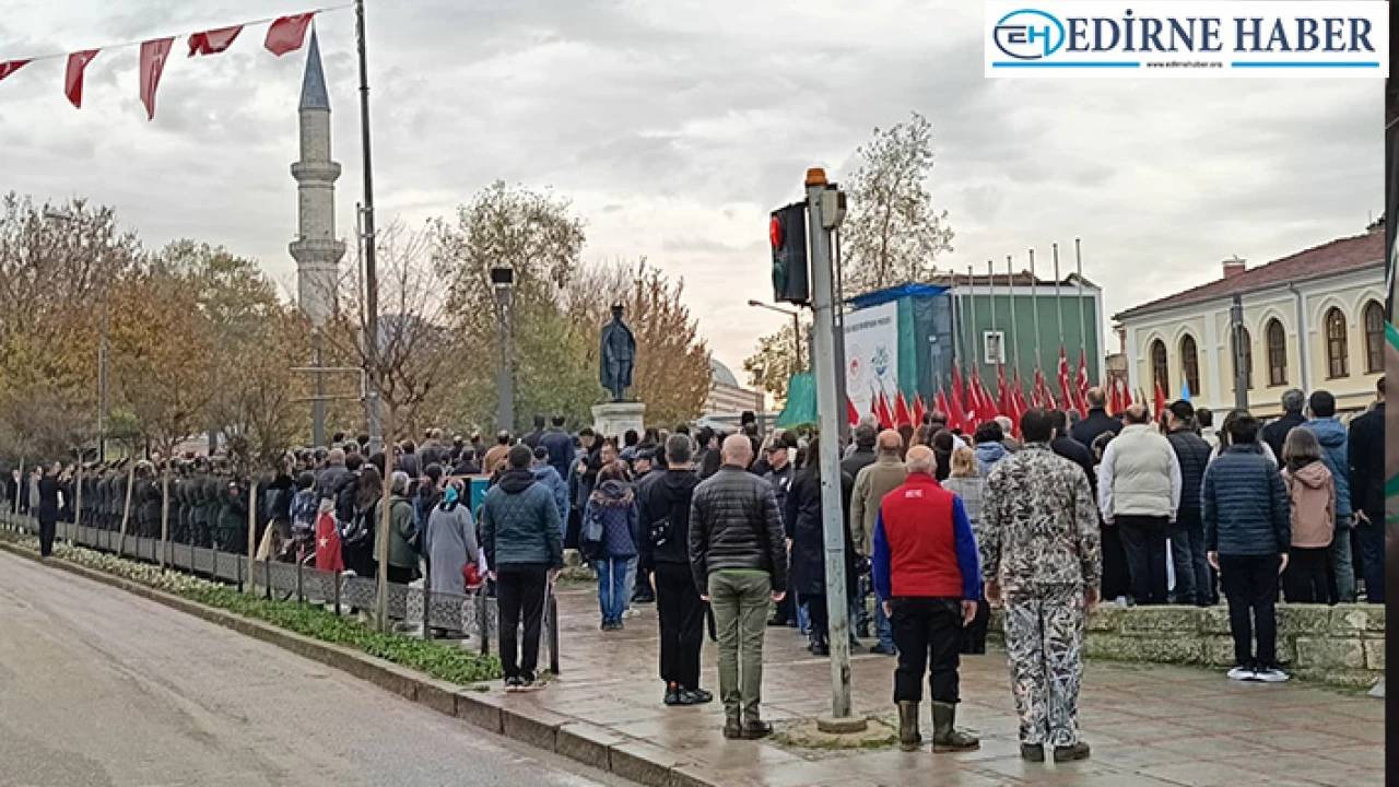 Atatürk Anıtı önünde düzenlenen törende Edirne Valisi Yunus Sezer, Garnizon Komutanı Tuğgeneral Yüksel Kolcu ve Belediye Başkanı Filiz Gencan ile valilikten izin alan siyasi parti temsilcileri, kurum ve kuruluşlar anıta çelenk sundu.