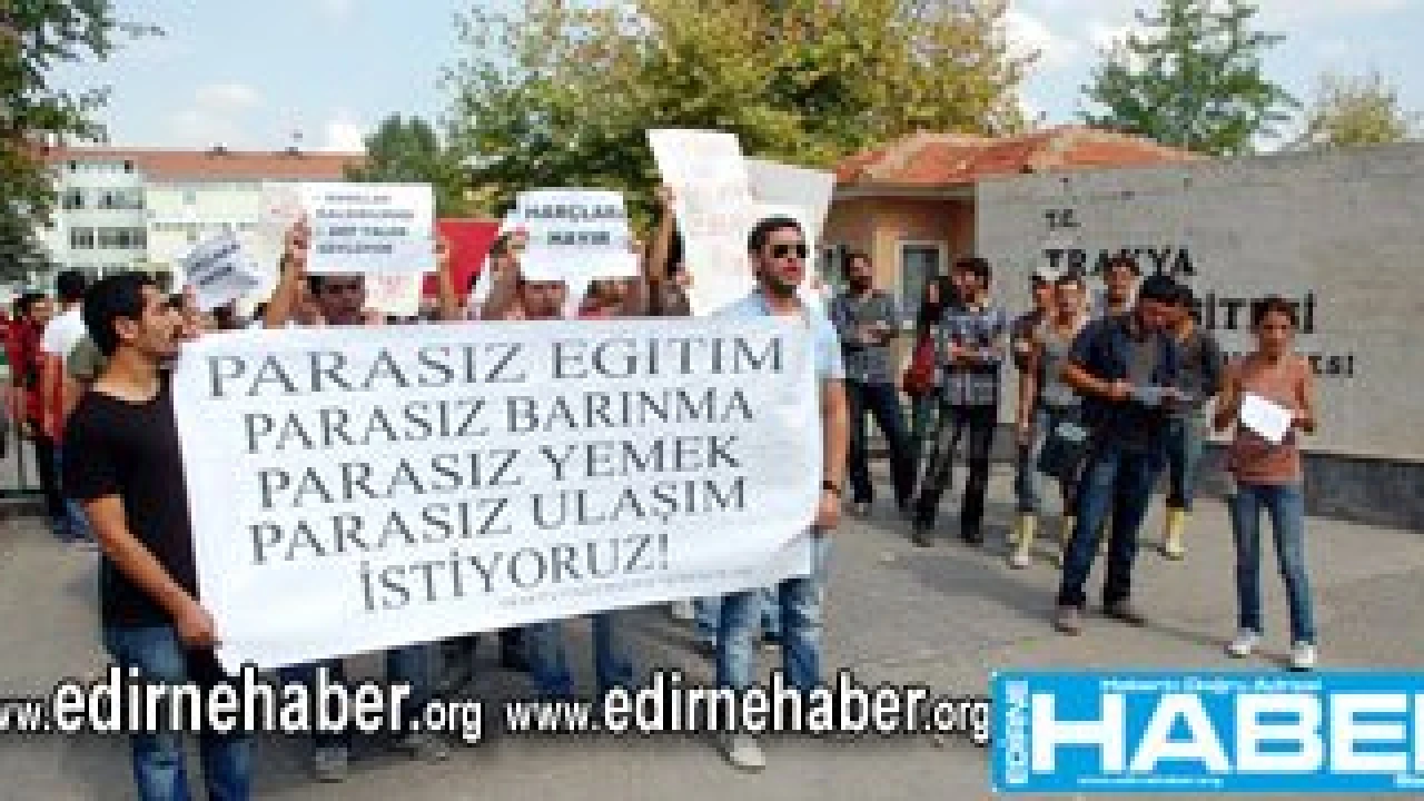 Trakya Üniversitesi (TÜ) İsmail Hakkı Tonguç Yerleşkesi önünde toplanan grup, ''parasız eğitim, sınavsız gelecek istiyoruz'' şeklinde slogan atarak Ayşekadın Yerleşkesi önüne yürüdü.Grup adına açıklama yapan TÜ öğrencisi Ruhat Keskin, Yükseköğretim Kurulu'nun yeni ''Öğrenci Disiplin Yönetmeliği''nin yürüyüş ile pankart ve afiş asmaya yasak getirdiğini öne sürdü.Harçların kaldırılmasının, parasız eğitim olmadığını ifade eden Keskin, şunları kaydetti:''Kaldırdık denilen okul kayıt dönemlerinde alınan harçlardır ve yalnızca 1. öğretim öğrencileriyle sınırlıdır. Biz öğrenciler olarak harçlar tamamen kaldırılına ve eğitim parasız hale gelene kadar mücadelemizi sürdüreceğiz.'' Grup, basın açıklamasının ardından olaysız bir şekilde dağıldı.