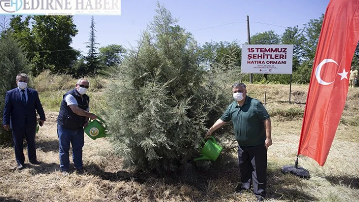 Fetullahçı Terör Örgütü'nün (FETÖ) hain darbe girişiminin birinci yıl dönümünde Edirne Valiliğince 251 şehit anısına oluşturulan hatıra ormanındaki fidanlara, Edirne Orman İşletme Müdürlüğü ekiplerince bakım yapıldı.