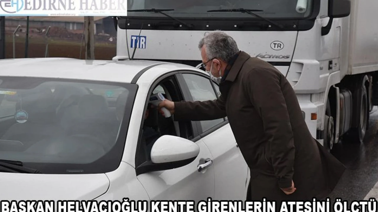 Edirne'nin Keşan ilçesinde de Belediye Başkanı Helvacıoğlu, ilçeye kara yoluyla giren şoförlerin ve araç içerisindekilerin ateşini elektronik dereceyle ölçtü.