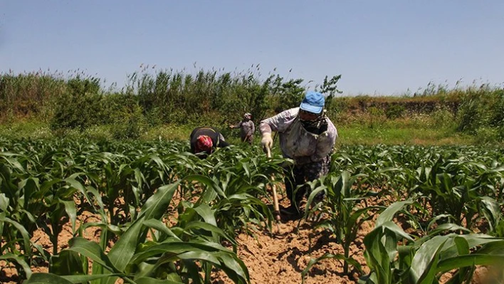 Asilbeyli köyünde kadınlar, ramazan ayında sıcak havalara aldırmadan tarlalarda çapa yapıyor.