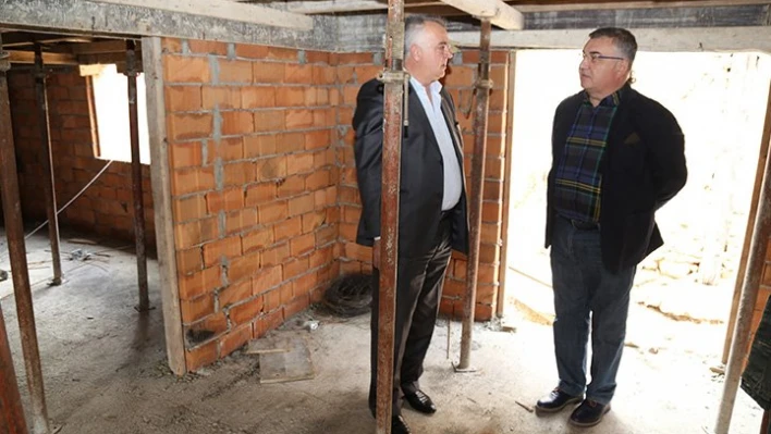 Başkan Yardımcısı Adem Sevim ile birlikte inşaatı inceleyen Başkan Kesimoğlu, çalışmalar hakkında bilgi aldı. Kesimoğlu, inşatta çalışan işçilere de harç kararak yardım ederken, kısa sürede Atatürk Evi’ni tamamlayacaklarını belirtti.