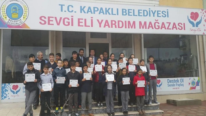 Belediyeden yapılan yazılı açıklamada, Kurtdere Mahallesi'ndeki ortakokul öğrencileri okullarında kendi imkanlarıyla topladıkları eşyaları "Sevgi Eli Yardım Mağazası"na teslim ettiler.Açıklamada görüşlerine yer verilen Kapaklı Belediye Başkanı İrfan Mandalı, öğrencilerin desteklerinden dolayı çok mutlu olduğunu belirterek, şu ifadeleri kullandı: