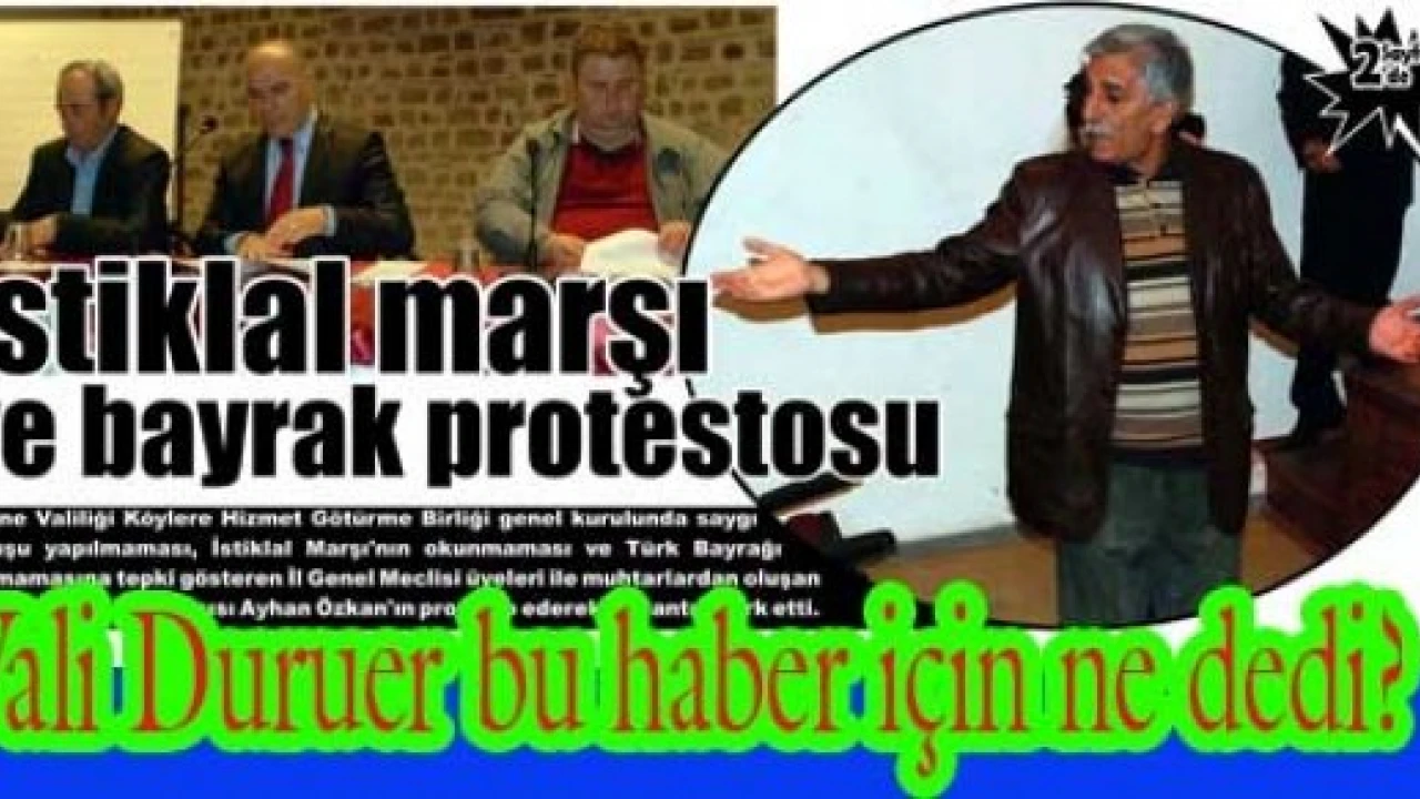 Vali Hasan Duruer, Edirne'nin Keşan ilçesinde yaptığı ziyaret sırasında, muhtarların bayrak ve İstiklal Marşı protestosunun yanlış bir anlaşılma olduğunu belirterek, “Hangi toplantılarda saygı duruşunda bulunulacağı ve İstiklal Marşı okunacağı, bayrağın nerede olacağı, Atatürk resminin nerede olacağı yönetmelikte bellidir” dedi.