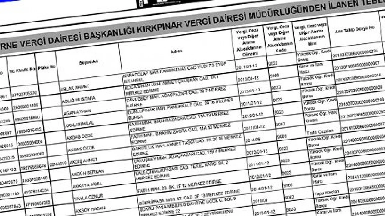 EDİRNE VERGİ DAİRESİ BAŞKANLIĞI KIRKPINAR VERGİ DAİRESİ MÜDÜRLÜĞÜNDEN