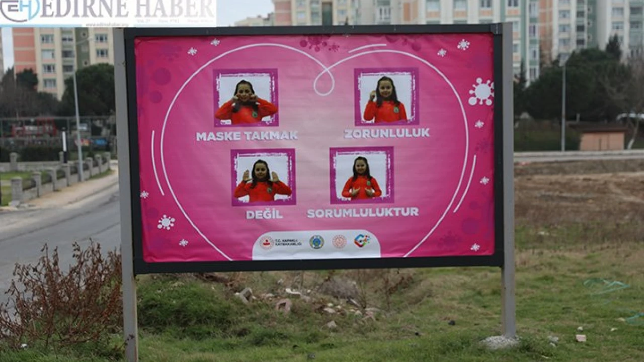 Öğrencilerin, işaret dili anlattıkları mesajlar ilçe genelindeki billboardlara asıldı.