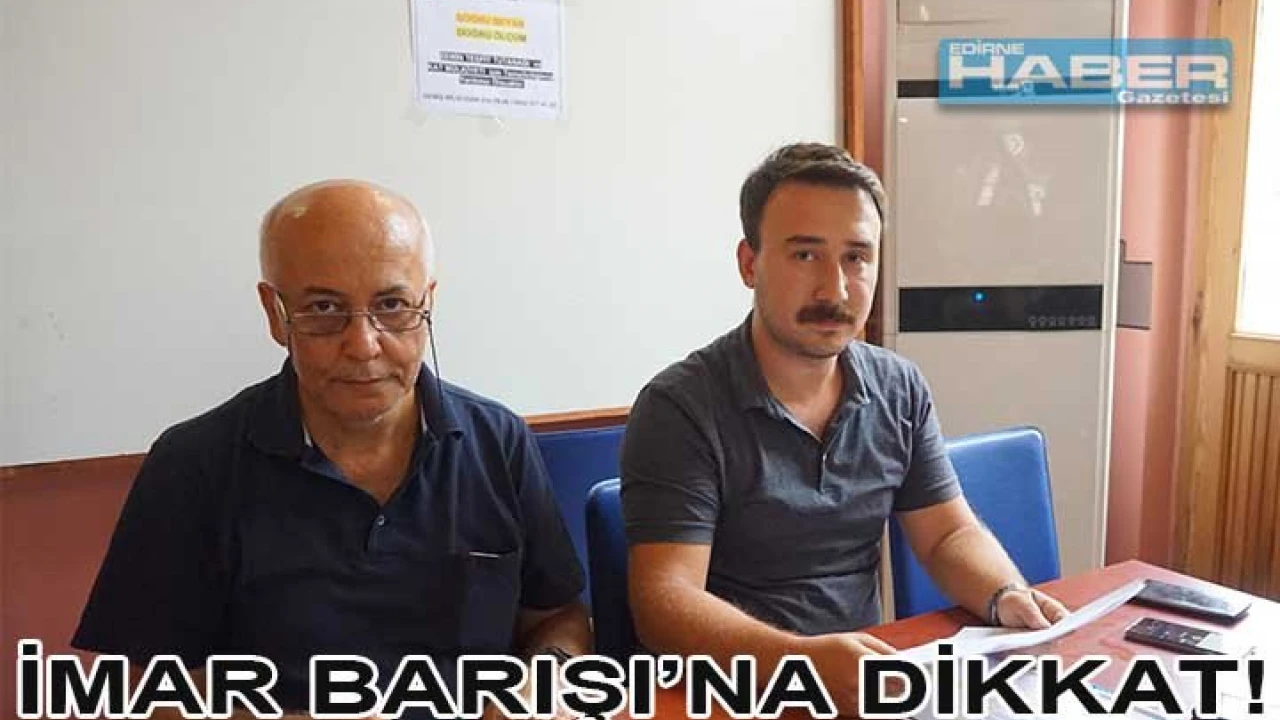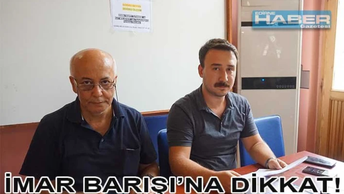 Çevre- Şehircilik ve Maliye Bakanlıkları tarafından hazırlanan, "yapı kayıt belgesi verilmesine ilişkin usul ve esaslar" başlıklı tebliğ, resmi gazete ‘de yayımlanarak yürürlüğe girmişti. Harita ve Kadastro Mühendisleri Odası Edirne Temsilcisi Harita Mühendisi Egemen Kurtdere, 'İmar Barışı' olarak getirilen uygulamanın aslında bir imar affı olduğunu iddia ederek, vatandaşların mağduriyet yaşamamaları adına uzman bir harita mühendisinden yardım almalarını tavsiye etti.Â