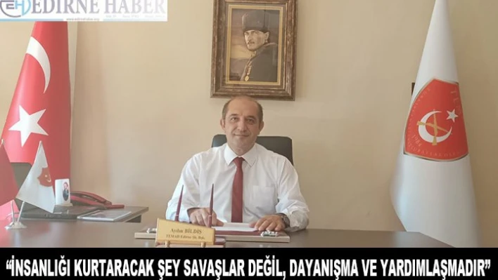 Türkiye Emekli Astsubaylar Derneği (TEMAD) Edirne İl Başkanı Aydın Bildiş, 2020 yılının bitmesine sayılı günler kala 2021 yılının beklentileri karşılamasını ve salgının son bulmasını diledi. İnsanlığı kurtaracak şeyin savaşlar değil, dayanışma ve yardımlaşma olduğunu vurgulayan Bildiş, 2020 yılının bunu öğreten bir yıl olarak hatırlanacağını aktardı.