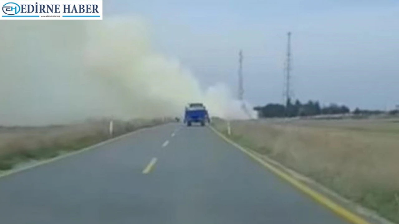 Kaymakamlık tarafından yapılan sosyal medya paylaşımında, anız yakılan bir tarla ve yanan tarlanın dumanının kara yoluna sirayet ettiği görülen bir fotoğraf yer aldı.