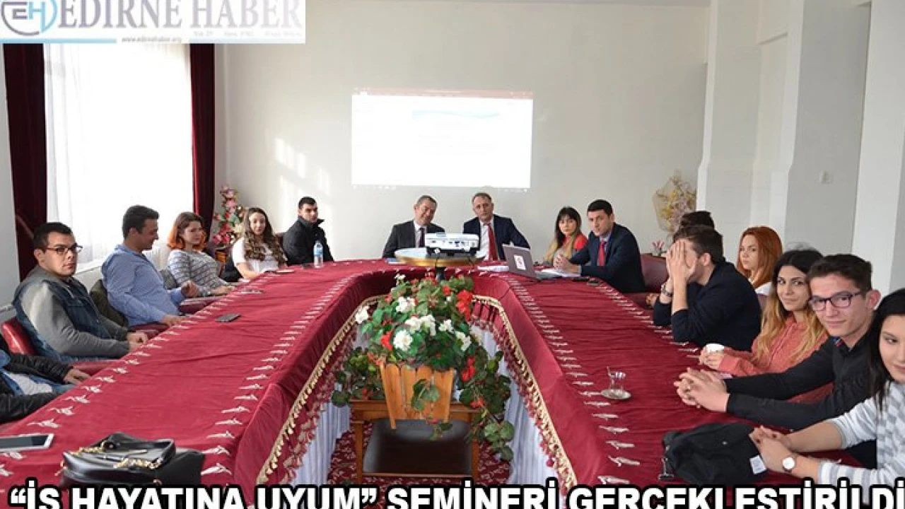 Kamu kurum ve kuruluşlarında devlet memuru olarak göreve başlayan gençlerin, devlet memurluğundan ayrılma risklerini engellemek, yeni görevlerine uyumlarını kolaylaştırmak, çalışma koşulları, hak ve sorumlulukları konusunda bilgilendirmek, iş hayatına bilinçli ve uyumlu başlamalarını sağlamak amacıyla programlanan seminer, İl Müdürü Bilgin Özbaş, Huzurevi Müdürü Tamer Tahmazoğlu, Çocuk Evleri Koordinasyon Merkezi Müdür Yrd. Volkan Korkmaz ve öğretmen Fati Alay tarafından Edirne Huzurevi toplantı salonunda gerçekleştirildi.