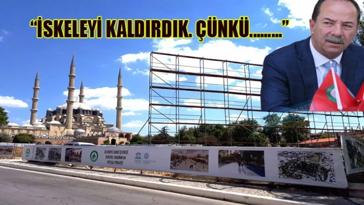 Selimiye Cami önündeki alana Edirne Belediyesi tarafından kurulan iskelenin kaldırılacağını belirten Belediye Başkanı Recep Gürkan, iskeleyi bir amaç için kurduklarını ve amaç geliştiği için iskelenin söküleceğini söyledi.