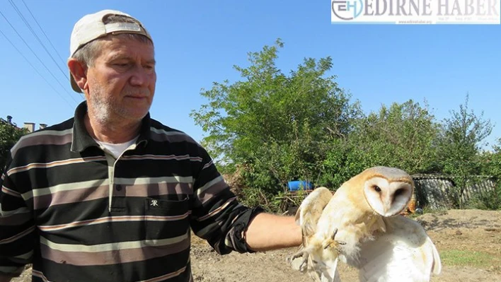 Kırklareli'nin Lüleburgaz ilçesinde bir hayvansever, tedavi ettirdiği yaralı baykuşa iyileşinceye kadar evinde bakacak.