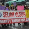 “Erkek egemen sistemin “8 Mart, kadını şımart” sloganıyla yüzümüze fırlattığı karanfillere inat; isyandayız, ayaktayız, kavgadayız” diyen kadınlar, kadın bedeni üzerindeki tüm söz ve karar hakkının kadına ait olduğunun kabul edilmesini, siyasi iktidarların kadının bedeninden elini çekmesini istedi.