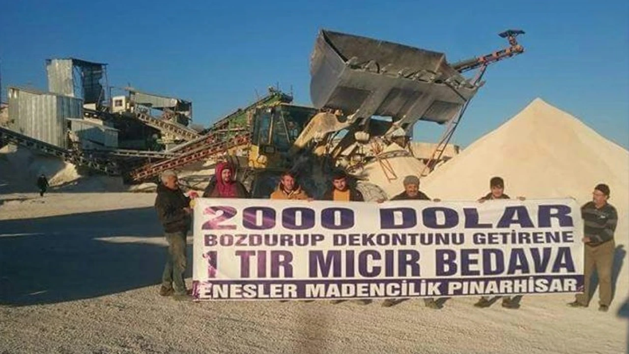 Kırklareli'nde bir firmanın 2 bin dolar bozduranlara bir tır mıcır vereceği duyuruldu.