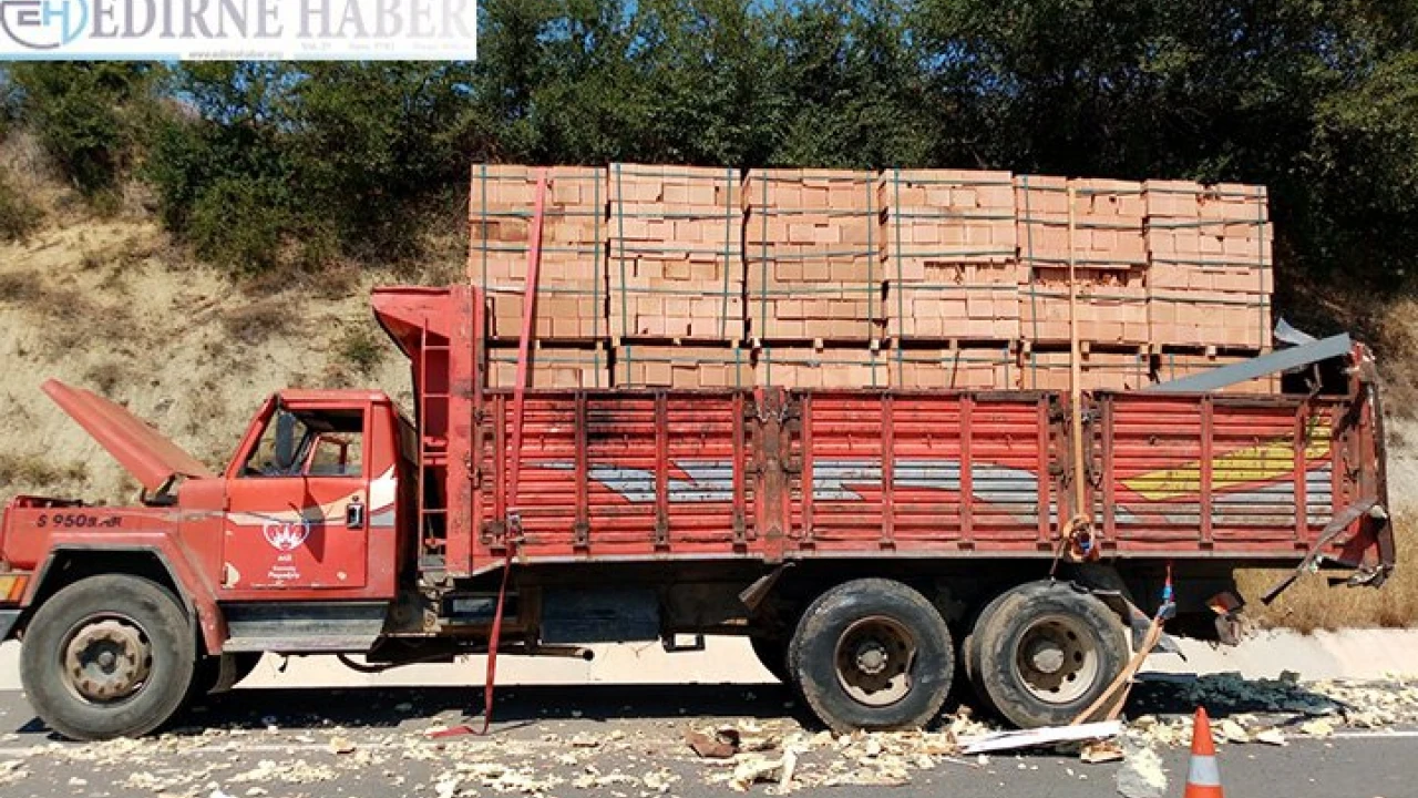 Tekirdağ'dan Keşan istikametine giden Hasan Barlas (51) yönetimindeki 16 EAF 60 plakalı kamyonet, Haliç Mahallesi'nde arıza nedeniyle emniyet şeridinde duran  22 RL 720 plakalı tuğla yüklü kamyona arkadan çarptı.