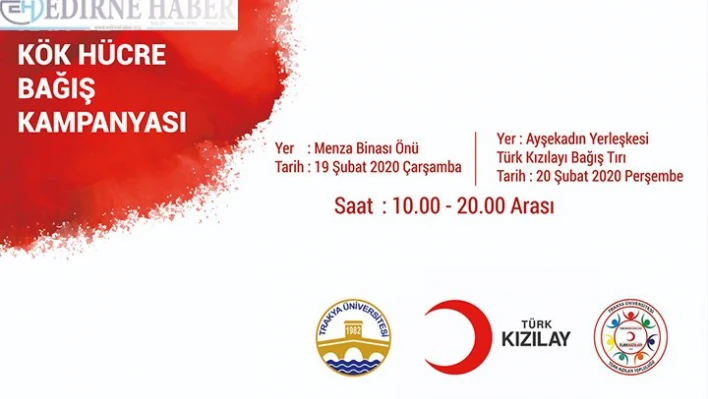 Trakya Üniversitesi (TÜ) "Kan ve kök hücre bağışı kampanyası" düzenleyecek.