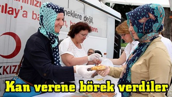 Türk Kızılayının kuruluşunun 146. yıl dönümü dolayısıyla, kan veren vatandaşlara, ev kadınlarının hazırladığı poğaça ve börekler verildi.