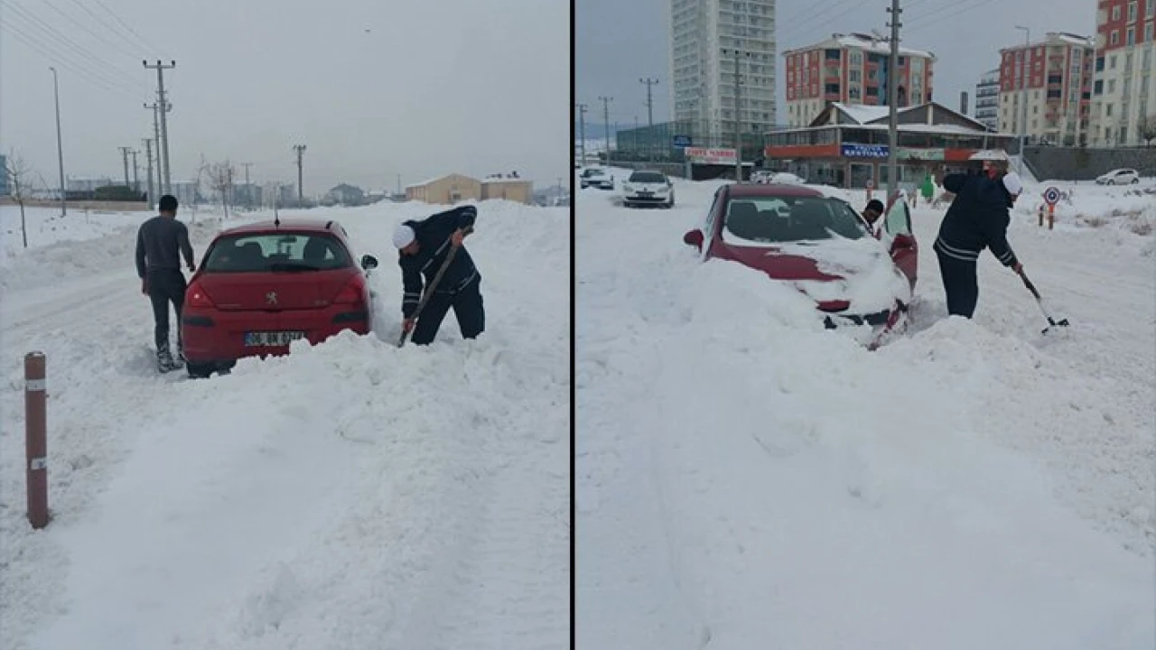 Keşan Belediye Başkanlığı Ulaşım Hizmetleri Müdürlüğü ekipleri, yoğun kar yağışı nedeniyle mağdur olan araç sahiplerine yardımcı olarak araçlarını kurtardılar.