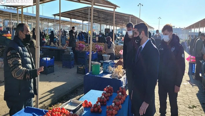 Lalapaşa Kaymakamı Muhammet Çiftçi, ilçede perşembe günleri kurulan sebze meyve pazarını ziyaret etti.