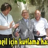 Kazancıgil, 95'inci yaş günü kutlama pastasını müze bahçesinde üfledi.