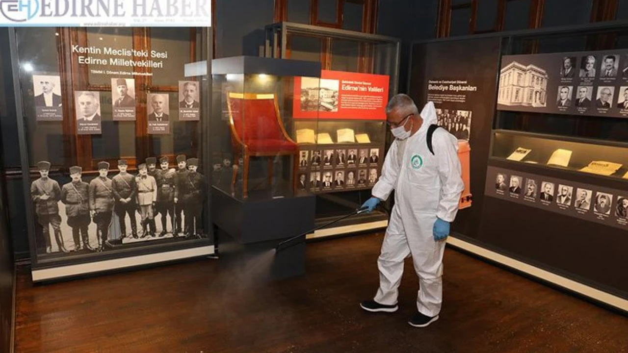Edirne Belediyesinden yapılan açıklamaya göre, koronavirüs önlemleri kapsamında kent müzesi açılış öncesi dezenfekte edildi.
