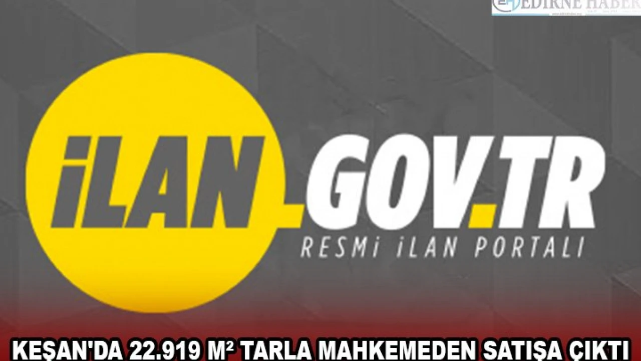 Basın İlan Kurumu internet sitesi ilan.gov.tr'de yer alan ilana göre Edirne Keşan'da 22.919 m² tarla mahkemeden satışa çıktı.