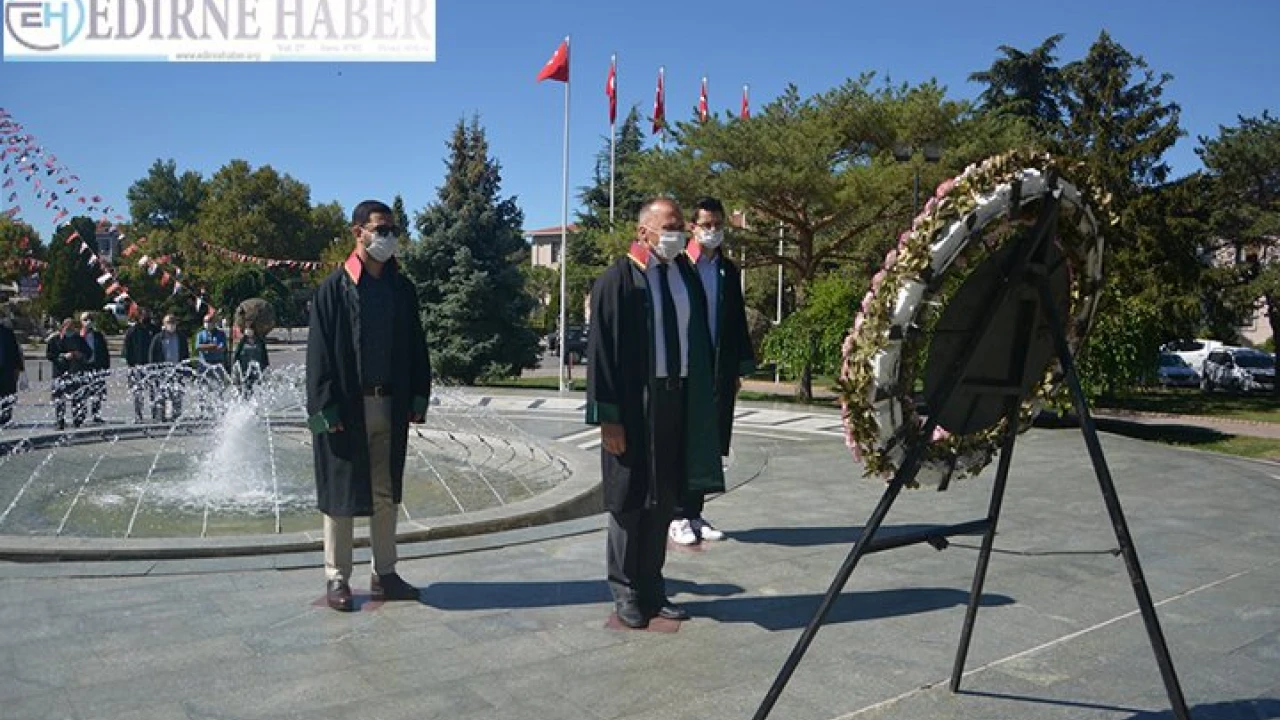 Özgürlük ve Demokrasi Meydanı'nda düzenlenen törende, Baro Başkanı Turgay Hınız tarafından Atatürk Anıtı'na çelenk sunuldu.