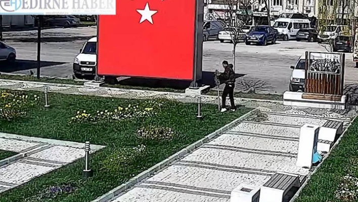 Kırklareli'nde tören alanındaki demir süslerin çalınma anı güvenlik kamerasına yansıdı