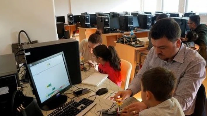 Etkinlikte, öğrenciler tek başlarına oluşturdukları maketleri kodlayarak hareket ettirmelerinin sevincini aileleriyle paylaştı.