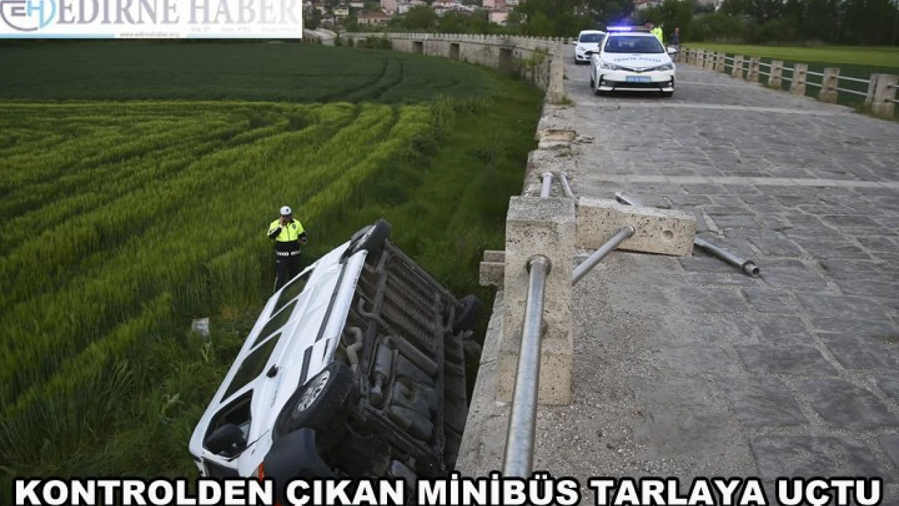 A.T idaresindeki 39 DT 572 plakalı minibüs Saraçhane Köprüsü'nde kontrolden çıkarak tarlaya devrildi.