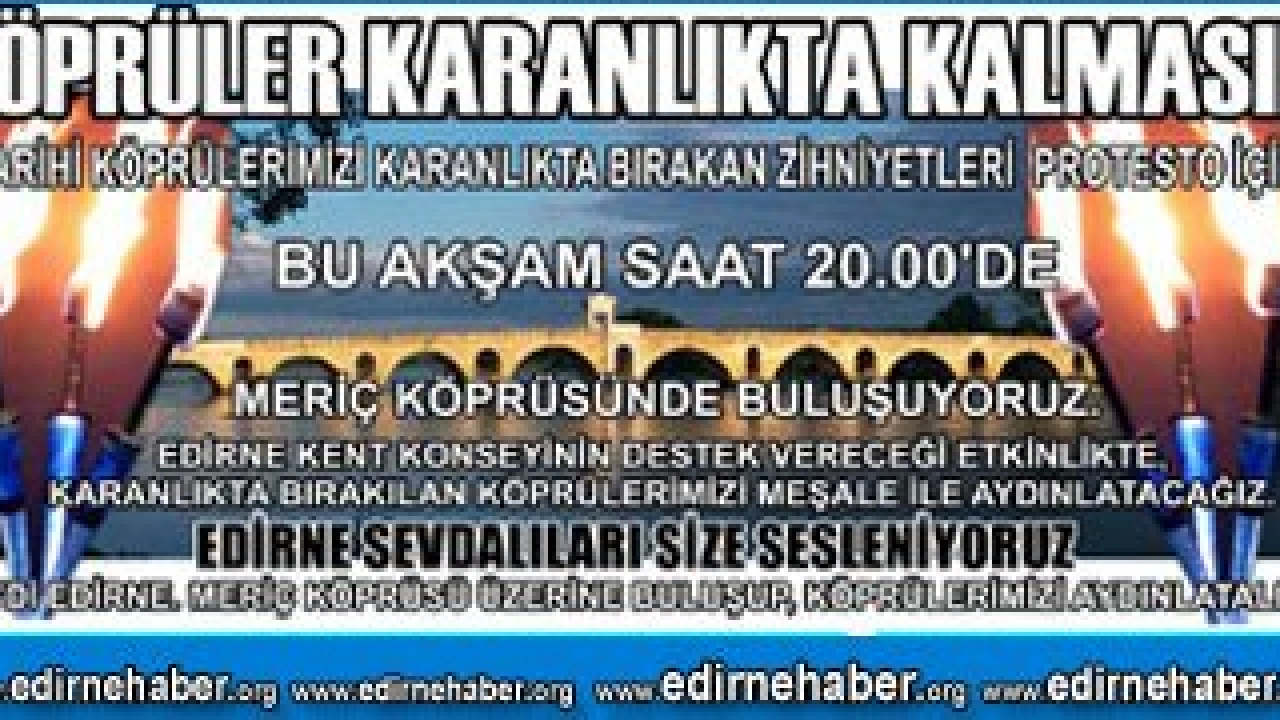 EDİRNE KENT KONSEYİNİN DESTEK VERECEĞİ ETKİNLİKTE, KARANLIKTA BIRAKILAN KÖPRÜLERİMİZİ MEŞALE İLE AYDINLATACAĞIZ.