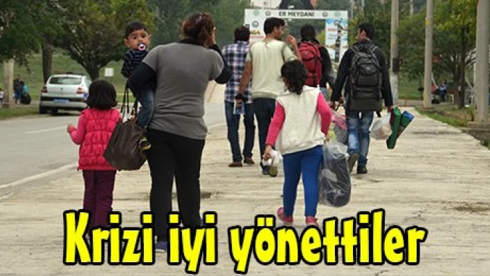 Avrupa ülkelerinin sığınmacıları kabul edeceği söylentilerinden sonra Edirne’ye akın eden Suriyelilerin 9 günlük macerasında Vali Dursun Ali Şahin ve Belediye Başkanı Recep Gürkan krizi iyi yönetti. Avrupa’ya gitme umudu ile şehrimize gelen ve günlerce TEM otoyolunu işgal eden, terminali sığınmacı kampına çeviren Suriyelileri ikna görevini başarı ile yürüten Vali Şahin ve Başkan Gürkan, özellikle krizin son üç gününde Sığınmacıların Sarayiçi’ne gitmeleri konusunda yaptıkları başarılı çalışmalar ile göz doldurdular.