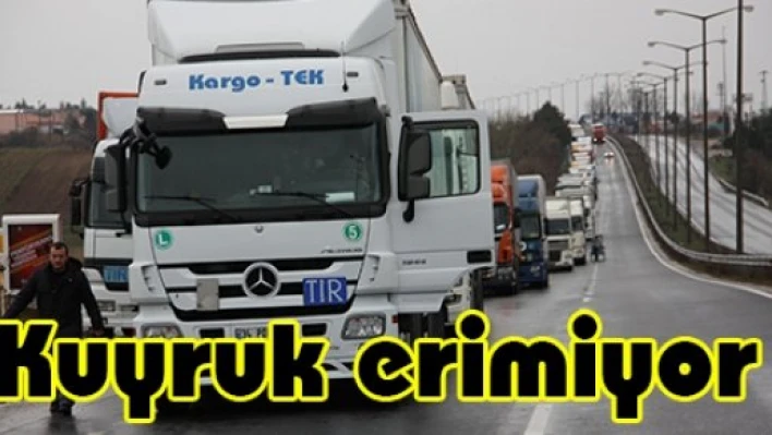 Trakya Gümrük ve Ticaret Bölge Müdürü Müslüm Yalçın, inşaat çalışmaları dolayısıyla talep karşılanamadığı için Bulgaristan'a açılan sınır kapılarındaki tır kuyruğunun devam ettiğini belirterek, "Karşı tarafla devamlı görüşüyoruz. İnşallah en kısa zamanda normale dönecek" dedi. Yalçın, gazetecilere yaptığı açıklamada, tır kuyruklarının oluşmasına neden olan Kapıkule Sınır Kapısı'nın karşısındaki Kaptan Andreevo Sınır Kapısı'nda yürütülen inşaat çalışmalarının yaklaşık bir yıldır sürdüğünü söyledi. Çalışma nedeniyle son birkaç gündür sahanın sadece bir bölümünün kullanılabildiğini aktaran Yalçın, bu durumun yüzde 30 civarında kapasite düşüklüğüne neden olduğunu ifade etti. Kapasitedeki düşüş nedeniyle tırların kuyruk oluşturduğunu aktaran Yalçın, "14 kilometre girmeyi bekleyen, 10 kilometre de çıkmayı bekleyen tır kuyruğumuz var. Karşı tarafla devamlı görüşüyoruz. İnşallah en kısa zamanda normale dönecek. Şu an Hamzabeyli kapasitenin üzerinde çalışıyor. Talep, inşaat dolayısıyla karşılanamadığı için kuyruk devam ediyor" diye konuştu.