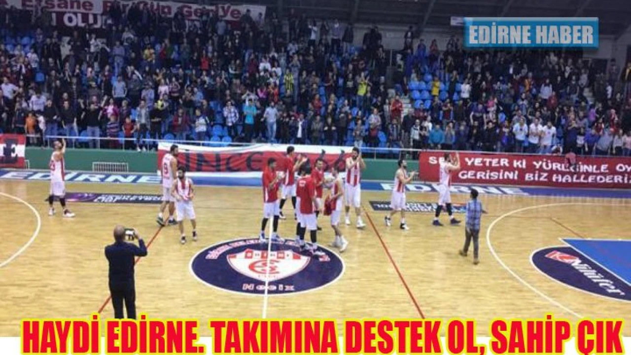 Türkiye Basketbol 2. Ligi'nde Edirne'yi temsil eden Edirne Belediyesi Edirnespor Erkek Basketbol Takımı'nın bu hafta sonu önemli bir maça çıkacağını ifade eden Edirne Belediye Başkanı Recep Gürkan, 'Haydi Edirne'm! Kentimizi ikinci ligde temsil eden takımını liderlik yarışında yalnız bırakma bu gururu hep birlikte yaşayalım' dedi.