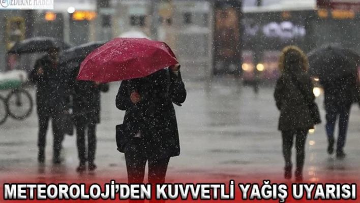 Meteoroloji Genel Müdürlüğü, Edirne için kuvvetli sağanak yağış uyarısı yaptı. Yağışların Trakya'da kuvvetli olması bekleniyor. Ani Sel - Su Baskını - Yıldırım - Ulaşımda Aksamalar gibi olumsuzluklara karşı dikkatli ve tedbirli olunması gerekiyor.
