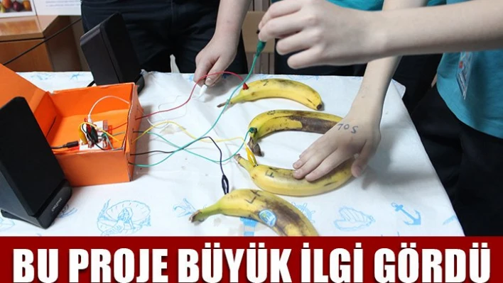 Edirne Selimiye İmam Hatip Ortaokulu öğrencileri "4006 TÜBİTAK Bilim Fuarı" kapsamında hazırladıkları projeleri sergiledi. Fuarda, iki gün boyunca öğrencilerin birbirinden farklı projeleri görücüye çıkarken "Meyvelerin Sesi", fuarın en çok ilgi çeken buluşlarından oldu. Takım lideri Ömer Mert Kıyunat, AA muhabirine, meyvelere dokunulmasıyla farklı notaların seslerinin çıkması üzerine kurgulanan proje hakkında bilgi verdi. Meyvelerin iletken özelliğini kullanarak elektronik bağlantıyla notaları elde ettiklerini anlatan Kıyunat, projeyi, iki haftalık çalışma sonucunda hazırladıklarını söyledi. Kıyunat, "Meyvelerin iletken özelliğini kullanarak elektronik bağlantı yoluyla ses çıkarıp çıkarmayacağını araştırdık. Araştırmalarımız sonucunda meyvelerin içerisinde bulunan iletken özellikleri vasıtasıyla elektronik bağlantı kurulabileceği ve makey makey kitiyle meyvelere tıklanarak veya dokunarak ses çıkarabileceğimizi, meyveleri klavye tuşu gibi kullanabileceğimizi keşfettik. İnternetten aldığımız bir kitle klavyenin tuşlarını muzlara bağladık." dedi.