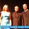 Trakya Üniversitesi Konservatuar Salonunda verdikleri konserden dolayı Mezzo Soprano Sanatçısı Ezgi Saydam ve Piyanist Kemerhan Turan'a konsere sponsor olan Edirne Koleji'ne teşekkür ederek günün anısına Edirne Koleji Koordinatör Müdürü Mahmut Boztürk'e plaket hediye etti.