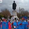 Yürüyüşün ardından Atatürk Anıtı önünde toplanan minikler, öğretmenleri eşliğinde haklarını öğrendiler.
