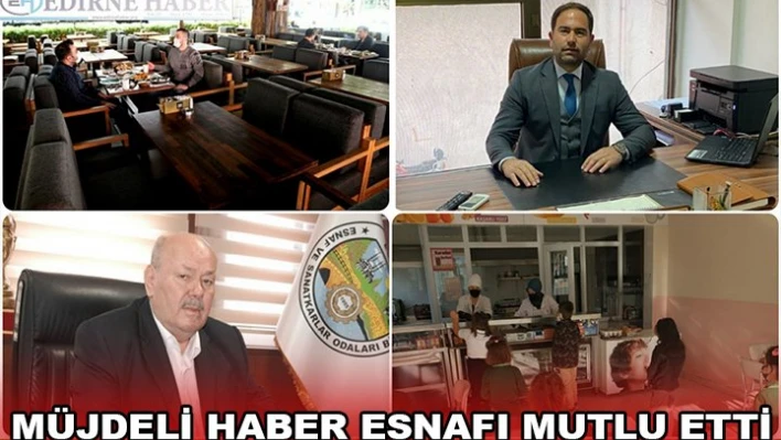 Cumhurbaşkanı Recep Tayyip Erdoğan'ın, yeni tip koronavirüs (Kovid-19) salgını nedeniyle esnaf ve sanatkara iki ayrı grup halinde hibe ödemesi yapılacağına ilişkin açıklaması, Edirne’de esnafları mutlu etti.